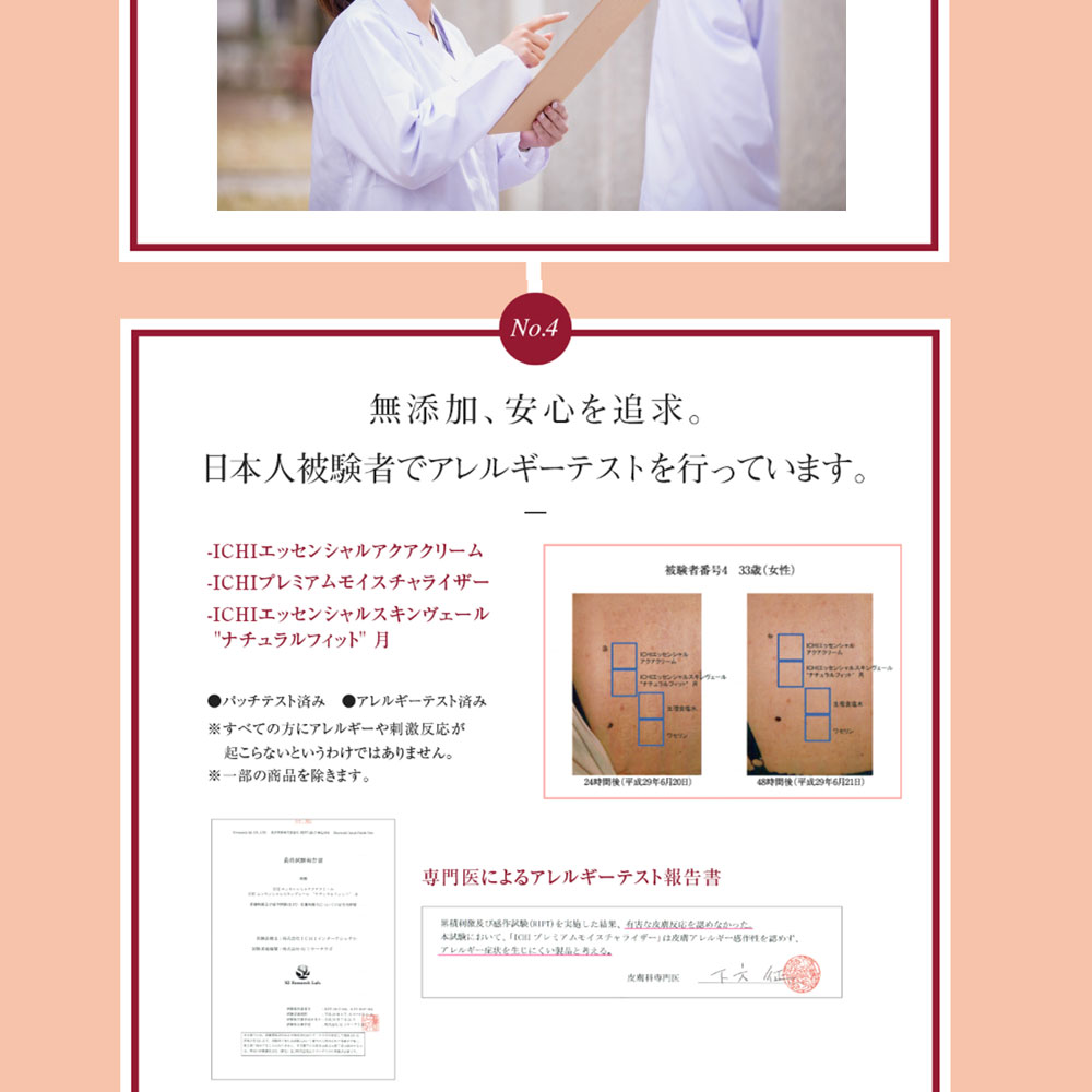 無添加で安心を追求し、日本人被験者でアレルギーテストを行っているので日本人の肌にピッタリ。